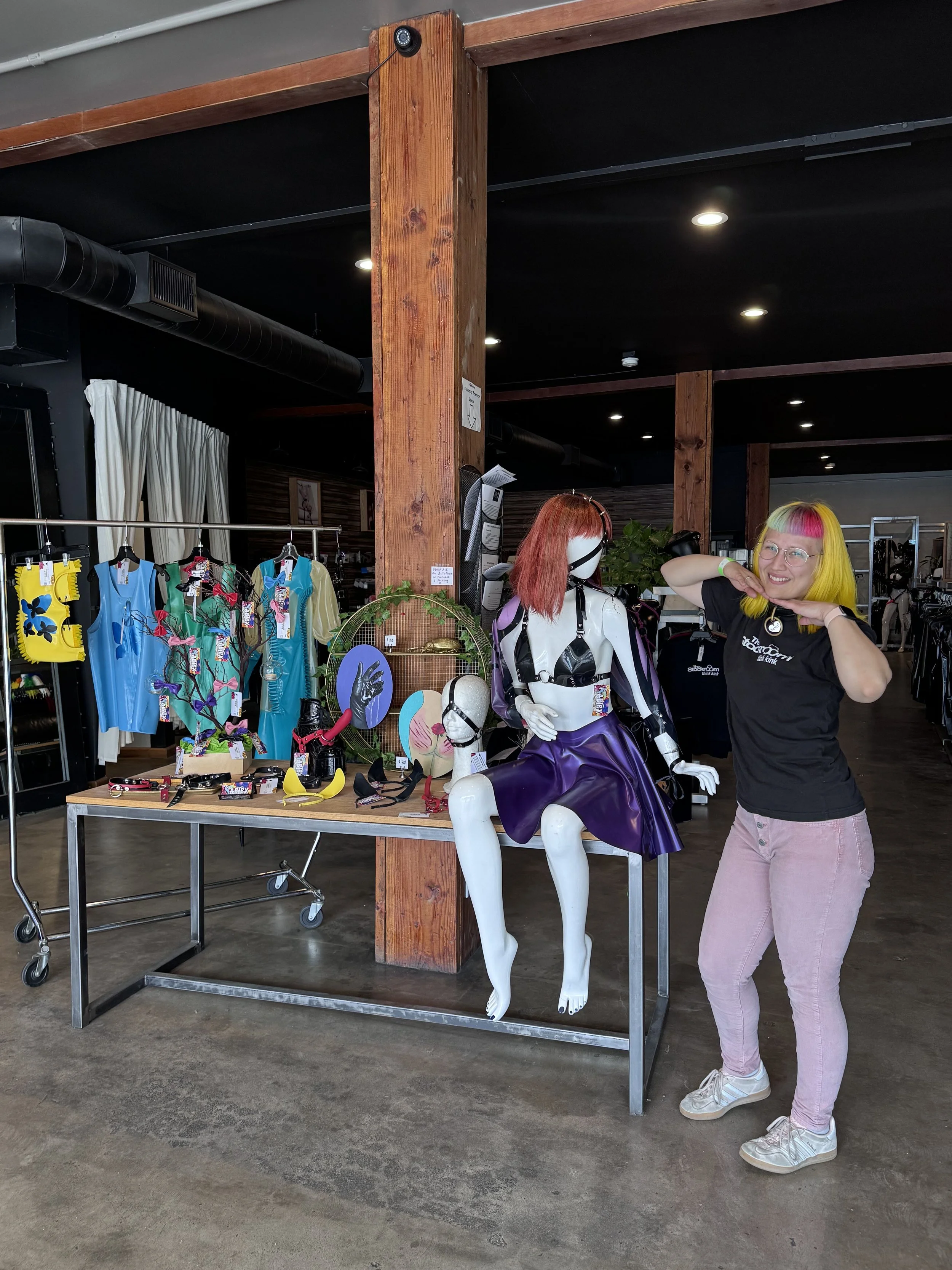 She got a job working for the world famous Stockroom / Syren latex store, and there she began her tutelage on how to construct her own latex garments.